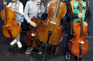The children listened to how the instrument can sound in expert hands, and then had practical experience of playing the cello themselves. This resulted in the large group of children who have chosen to learn this amazing instrument.